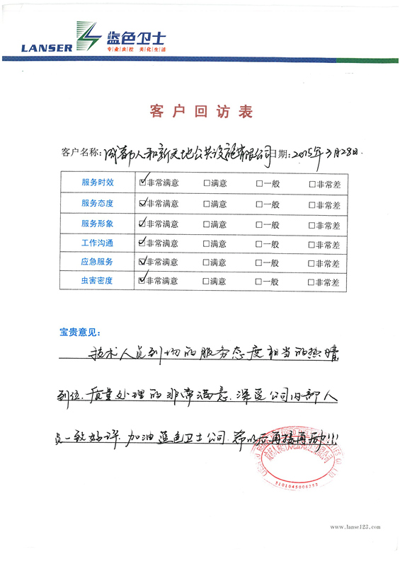 通過合作,對四害的消殺控制的很好,符合項(xiàng)目品質(zhì)要求!
