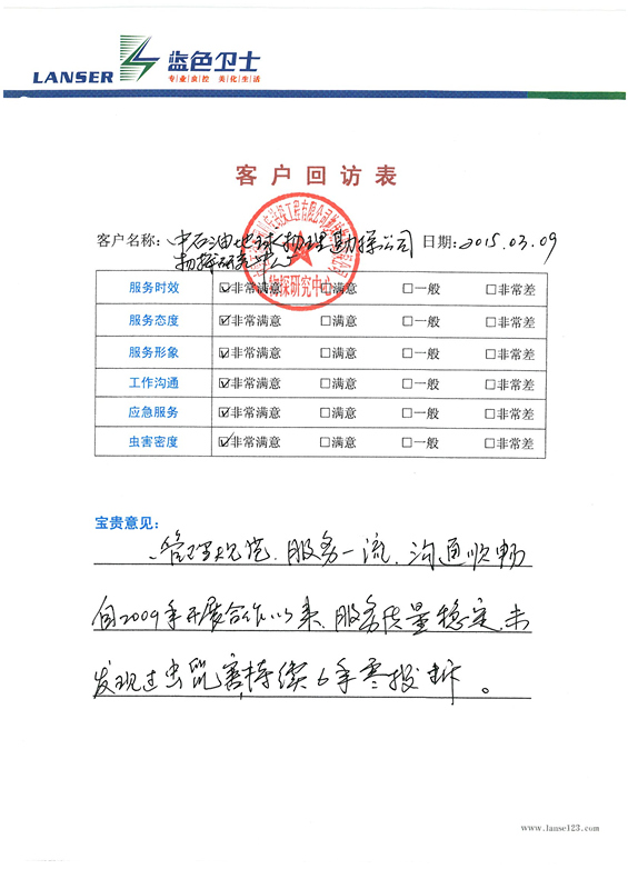 中石油物探公司的回訪評價(jià)